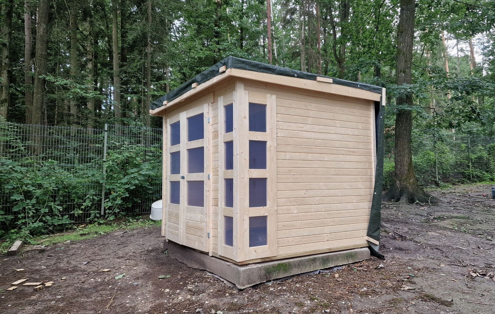 Einige der Schutzhütten in den Außengehegen sind bei einem Sturm zu Schaden gekommen und es wurde dringend Zeit, diese zu ersetzen.